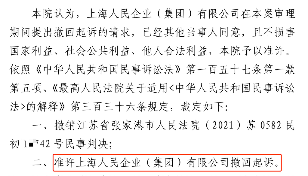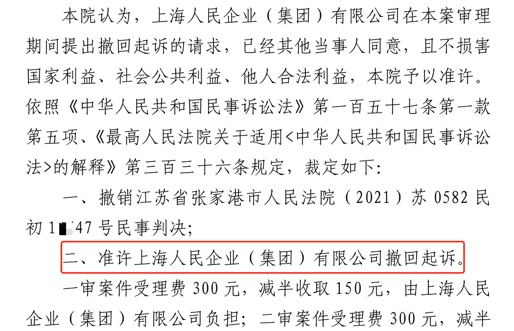 新疆胜诉佳讯 | 人民企业系列案苏州六案上海人民公司撤诉